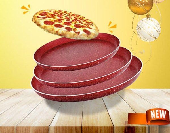 - 3 مقاسات متنوعة لخدمة كل المناسبات: من البيتزا الصغيرة للأطفال لبيتزا العائلة الكبيرة – كل مقاس له استخدامه المريح والعملي.
