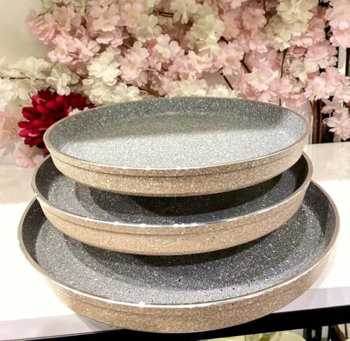 - طقم مكوّن من ثلاث صواني بأحجام مختلفة يمنحك حرية اختيار المقاس المناسب لكل وصفة، سواء لتحضير بيتزا كبيرة للعائلة أو أحجام أصغر للاستخدام الفردي، مما يوفر مرونة عملية داخل المطبخ.