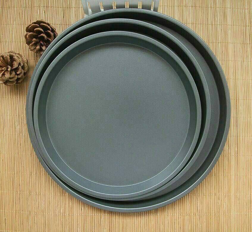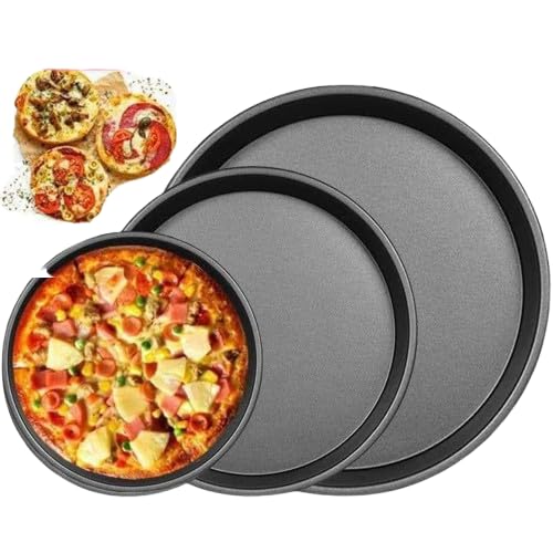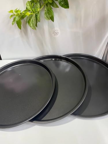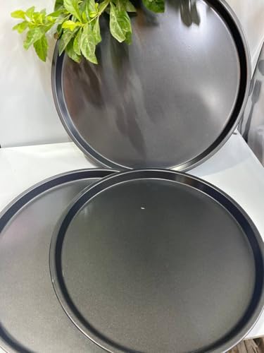صواني بيتزا 3 قطع معدنية غير لاصقة مستوردة من الفولاذ مقاومة للخدش للفرن دائرية عالية الحواف للمطبخ والحفلات DR