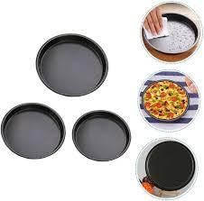 Generic - صواني لخبز البيتزا مصنوعة من الصلب الكربوني المستدير غير اللاصق مثالية للاستخدام في الفرن مكونة 3 قطع مقاومة للالتصاق صلب عالي الكربون متعدد