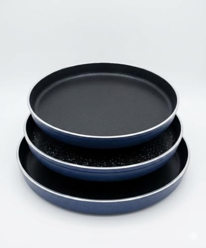 • طقم مكوّن من ثلاث صواني بأحجام مختلفة يتيح لك اختيار المقاس المناسب حسب احتياجك، سواء لتحضير بيتزا عائلية كبيرة أو أحجام أصغر، مما يمنحك مرونة أكبر داخل المطبخ.