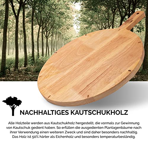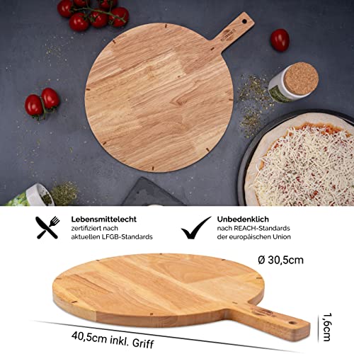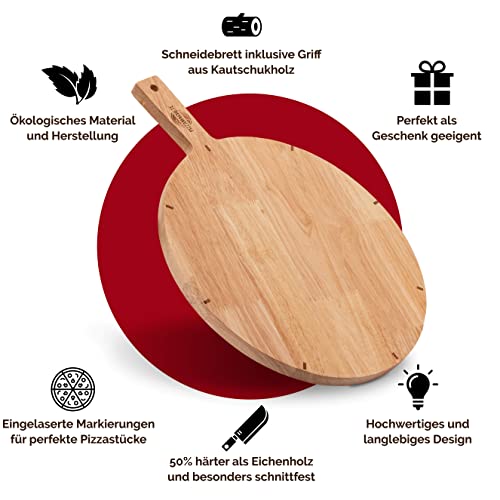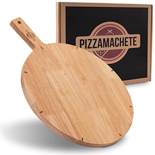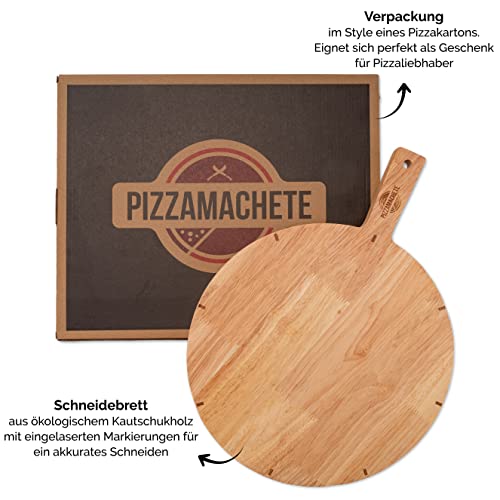 PIZZAMACHETE - لوح تقطيع فاخر من بيزاماشيت طبق بيتزا خشبي عالي الجودة مع مقبض صينية تقديم للبيتزا والتارت والفلامبي والخبز خشب شجر المطاط عدد القطع: 1