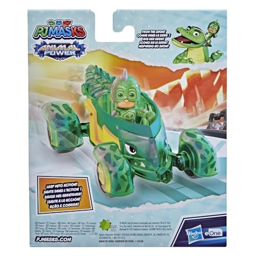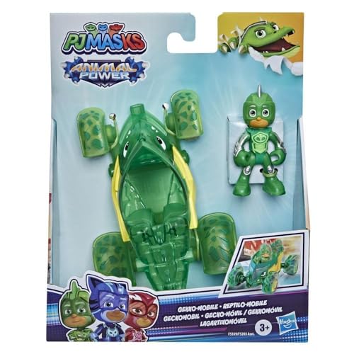 PJ Masks - لعبة انيمال باور جيكو موبايل لمرحلة ما قبل المدرسة، سيارة جيكو مع مجسم شخصية جيكو للأطفال من سن 3 سنوات فما فوق من بي جيه ماسكس