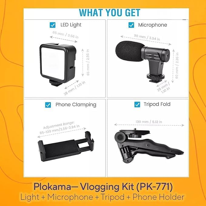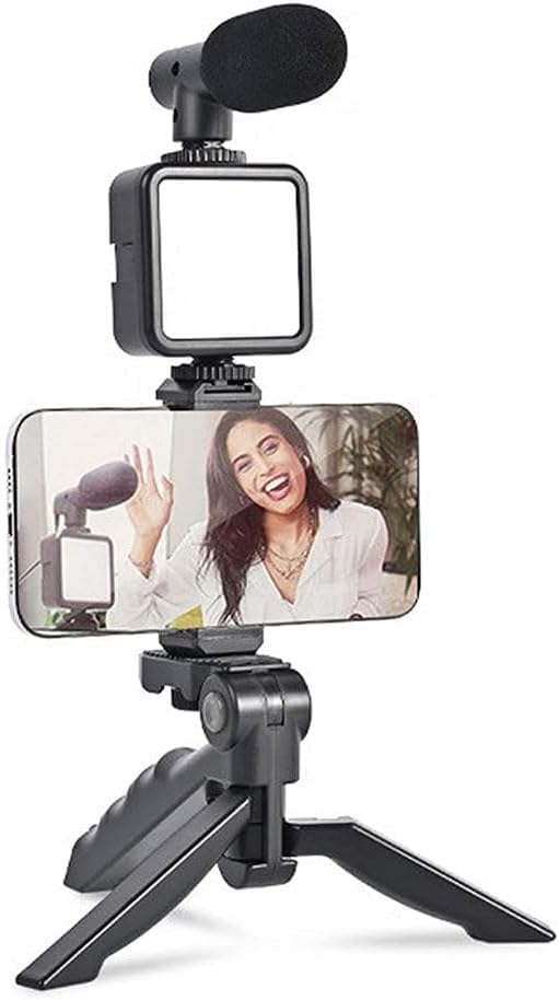 Generic - مجموعة تسجيل الفيديو (PK-771) لتصوير الفيديو وتسجيل فيديو يوتيوب لاي موبايل أو كاميرا رقمية مع ميكروفون بإضاءة ليد وحامل موبايل