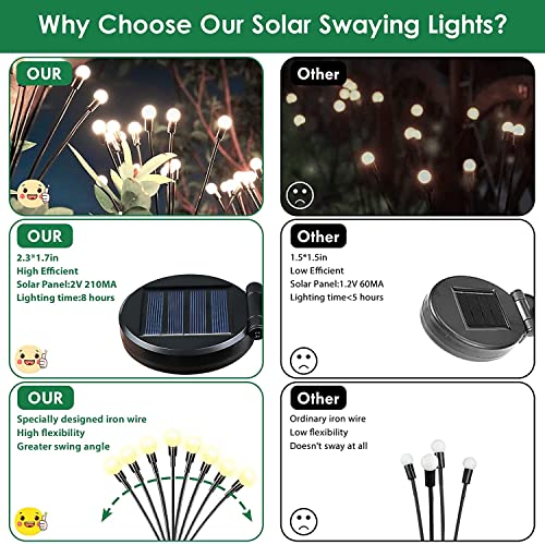 - 【مصابيح فايرفلاي بالطاقة الشمسية】: المصابيح الشمسية المزخرفة الأكثر تميزًا في السوق، مصابيح النجوم المتأرجحة هذه مدعومة بأسلاك ناعمة ومرنة للغاية. لذلك عندما تهب الرياح، تتأرجح الأضواء، فتغمرك السعادة بمدى جمالها، فهي مصباح شمسي فريد للغاية لن تراه في أي مكان آخر.