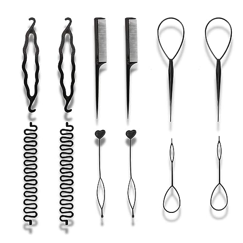PLABBDPL - طقم اكسسوارات لتصفيف كعكة الشعر، 12 قطعة من أدوات تصفيف الشعر بشكل كعكة، ذيل الحصان، مجموعة تجديل ضفائر الشعر يمكنك صنعها بنفسك للنساء والبنات الفرنسيات، تستخدم مع جميع أنواع الشعر