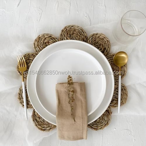 - تجسد قاعدة الأكواب المصنوعة يدويًا المصنوعة من القش الطبيعي أعمالًا حرفية أصلية، وتتميز بنمط وردة رقيق يجلب الفن والأناقة ولمسة دافئة لا تتأثر بمرور الزمن لأي طعام أو مكان ديكور.