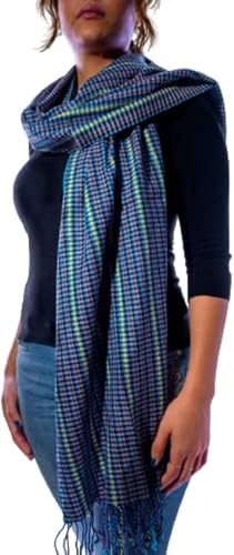 Generic - سكارف كاروهات 100% قطن، 180 × 30 سم، ازرق/اخضر/احمر