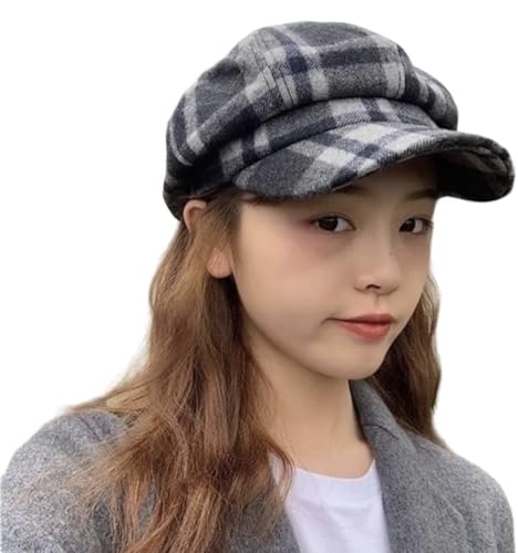Generic - قبعة نيوزبوي منقوشة للنساء، ازرق ورمادي، مقاس واحد