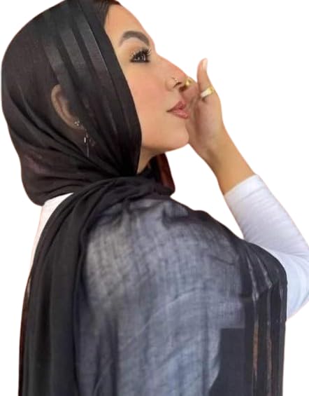 Generic - سكارف من شاش الكتان السادة بنمط 3 خطوط - غطاء للرأس مريح ورائع - حجاب قطني للنساء (أسود)