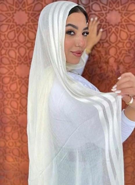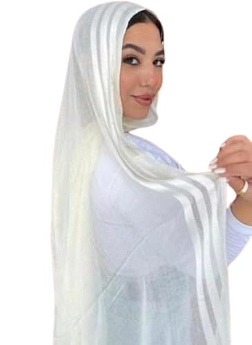 Generic - سكارف من شاش الكتان السادة بنمط 3 خطوط - غطاء للرأس مريح ورائع - حجاب قطني للنساء (اوف وايت)