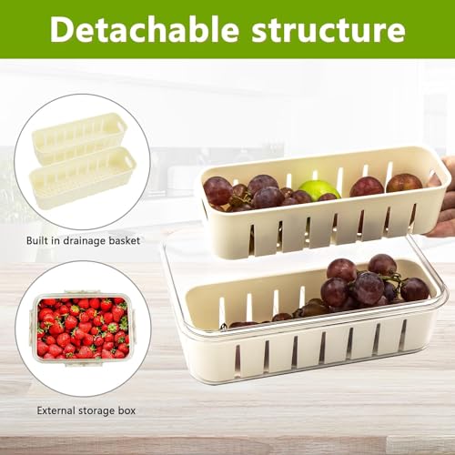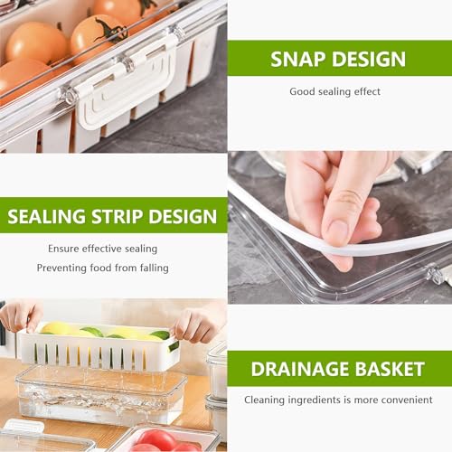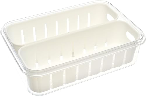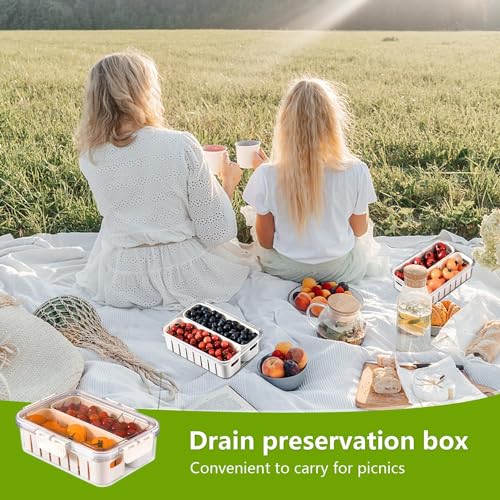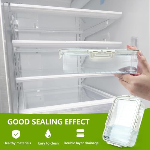 Generic - علب ثلاجة اكريليك شفافة محكمة الغلق حاويات مقسمة قابلة للفصل مع فتحات تصريف المياه تخزين الخضروات والفواكه للتكديس ومناسبة للسفر من Plan A وسط + 2 اقسام