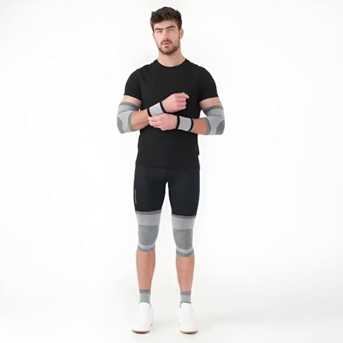 Plan A - مجموعة معدات واقية للياقة البدنية، واقيات الذراع، واقيات المعصم، وسادات الركبة وواقيات الكاحل، مجموعة دعامات دعم الجسم، تمنع الاصابات، تخفف الالم في صالة الالعاب الرياضية (8 قطع)