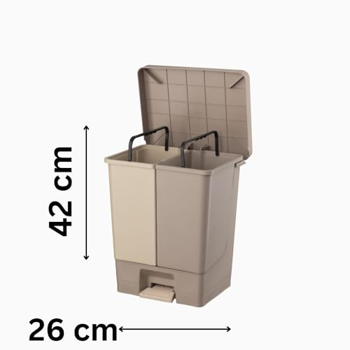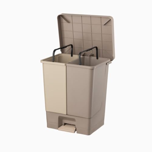 Generic - سلة مهملات بتصميم مدمجة مزودة بدلوين ومقبض، تعمل بدواسة قدم، ومصنوعة من بلاستيك صلب من بلانيت ديو، بيج، سعة 20 ل