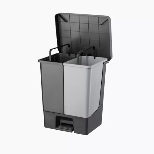 Generic - سلة مهملات بدواسة ودلو مزدوج ومقبض بتصميم واحد مدمج مع حركة بدواسة القدم، مصنوعة من مادة بلاستيك صلبة من بلانيت ديو، رمادي، 20 لتر