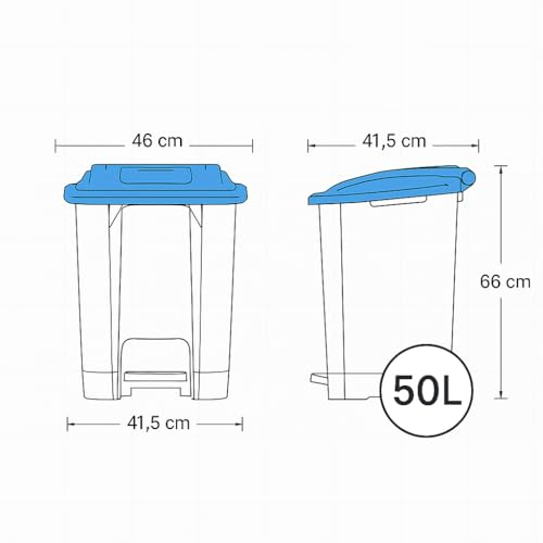 - سعة كبيرة للمناطق المزدحمة: سعة 50 لترًا مثالية للاستخدام في المدارس والمستشفيات والجامعات ومراكز التسوق، حيث تستوعب كميات كبيرة من النفايات وتقلل من الحاجة للتفريغ المتكرر.