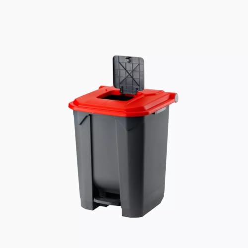 Generic - سلة مهملات بدواسة رفيعة من بلانيت، سلة مهملات بغطاء متارجح مزدوج، دواسة قدم مع دلو بمقبض مدمج، مصنوعة من البلاستيك الصلب، احمر (30 لتر)