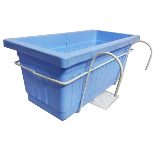 Generic - حوض للزراعة مقاس40في20 بحامل معدني للبلكونة - لون لبني، بلاستيك، أزرق