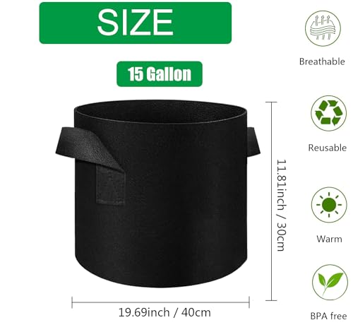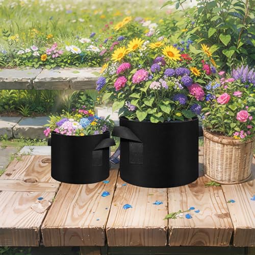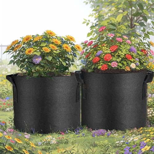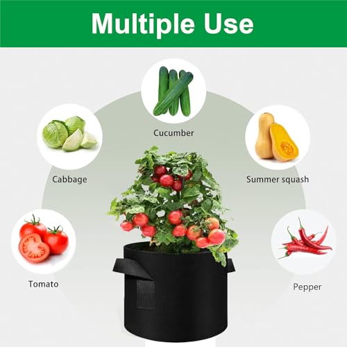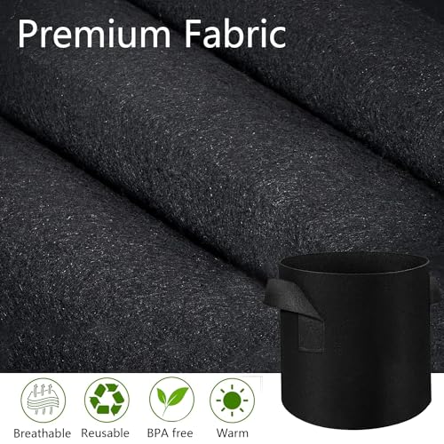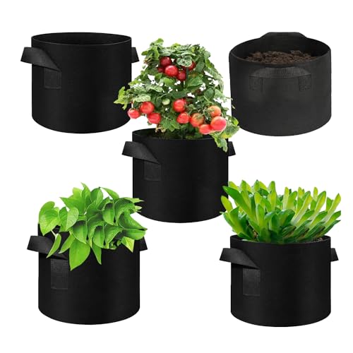 VASLON - أكياس زراعة النباتات 3.7 لتر من 5 قطع، أوعية نمو النباتات من قماش سميك غير منسوج متين مع مقابض للخضروات/الزهور/النباتات (56.7 لتر) (أسود)