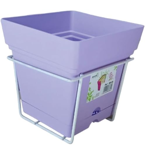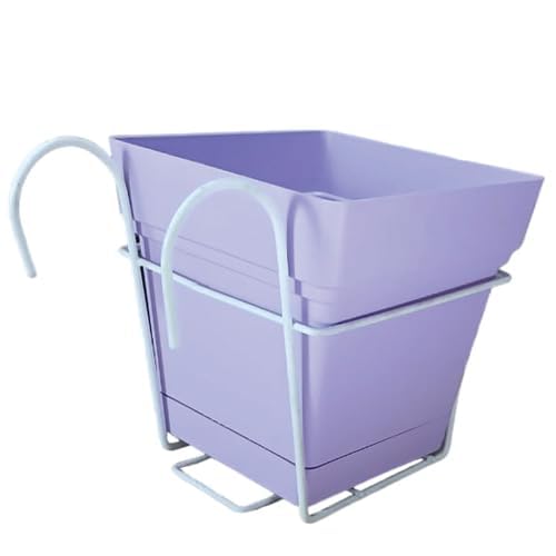 Generic - وعاء زراعة -شالية مربعة 18 سم -بولي بروبلين معالج لثبات الالوان ومقاومة الكسر - بحامل معدني متين مطلي إلكتروستاتك ابيض للتعليق - لون (بنفسجي فاتح)