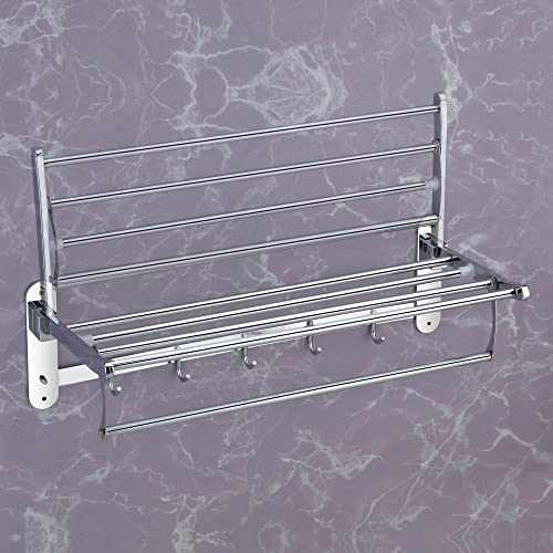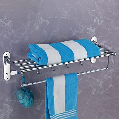 Plantex - بلانتكس رف مناشف قابل للطي من الستانلس ستيل للحمام/حامل المناشف/حامل المناشف/اكسسوارات الحمام (24 انش) - كروم