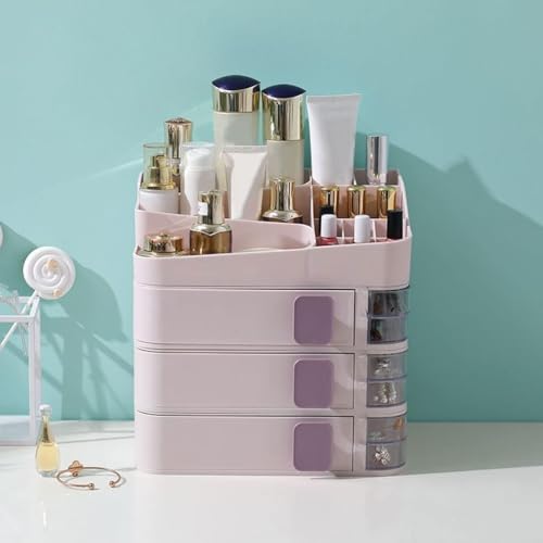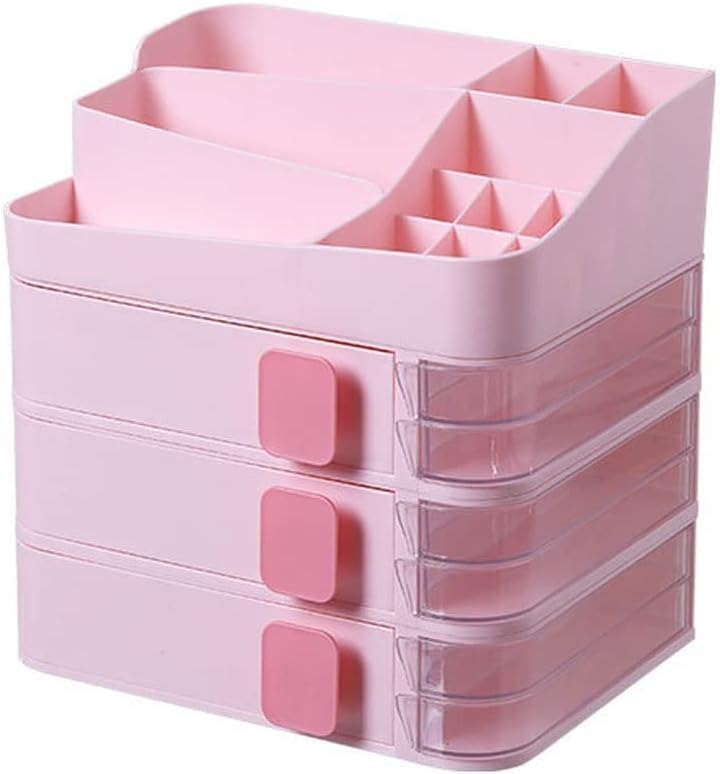 Generic - منظم مكياج بلاستيك 3 أدوار بأدراج جانبية – وحدة تنظيم متعددة الاستخدامات للأدوات والاكسسوارات بتقسيم عملي وسعة تخزين مناسبة as
