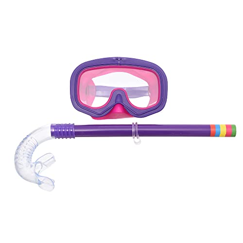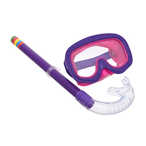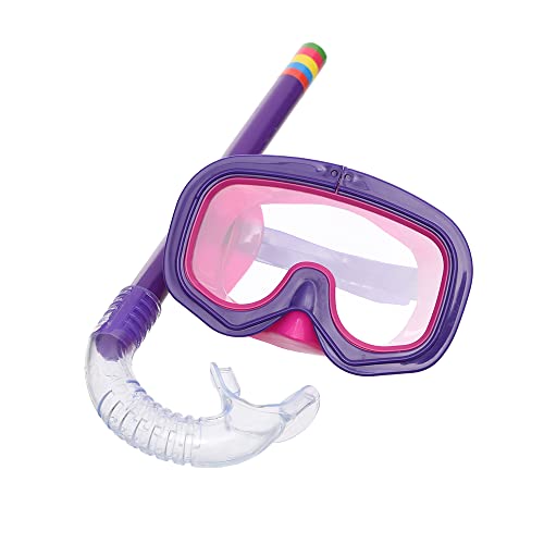 Generic - كمامة سباحة بلاستيكية مضادة للضباب مع حزام رأس قابل للتعديل وانبوب تنفس امن للاطفال، مجموعة من قطعتين - ارجواني وبينك