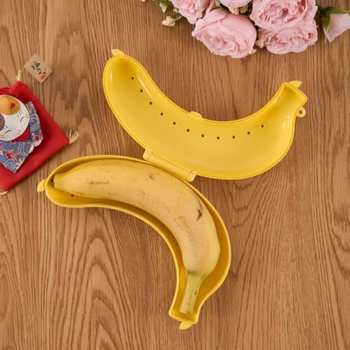 - تصميم مبتكر على شكل موزة: حافظة طعام بلاستيكية صفراء بتصميم واقعي يحاكي شكل الموزة الطبيعية، مثالية لحفظ الموز والفواكه الطازجة من التلف والكدمات