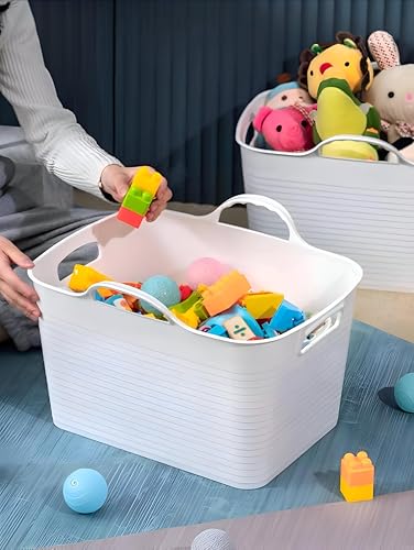 Generic - سلة بلاستيكية بنمط حاوية تخزين كبيرة بحجم 44 × 25 × 30 سم، متعددة الاستخدامات، بلون عشوائي، خفيفة الوزن بتصميم متين، مصنوعة من مواد عالية الجودة لتوفير تخزين منزلي فعال (لون أبيض)