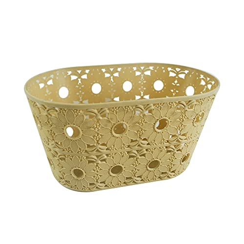 - سلة تخزين متينة: مصنوعة من البلاستيك السميك بنمط منسوج وهيكل متين، مما يجعلها مثالية لتنظيم الخزانة والدواليب الصغيرة