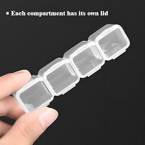 - يبلغ مقاس كل خانة 2.3 × 2.5 سم، حجم مثالي للخرز الصغير والمسامير والصواميل والجليتر وغيرها من مكونات الحرف اليدوية أو المجوهرات الصغيرة.