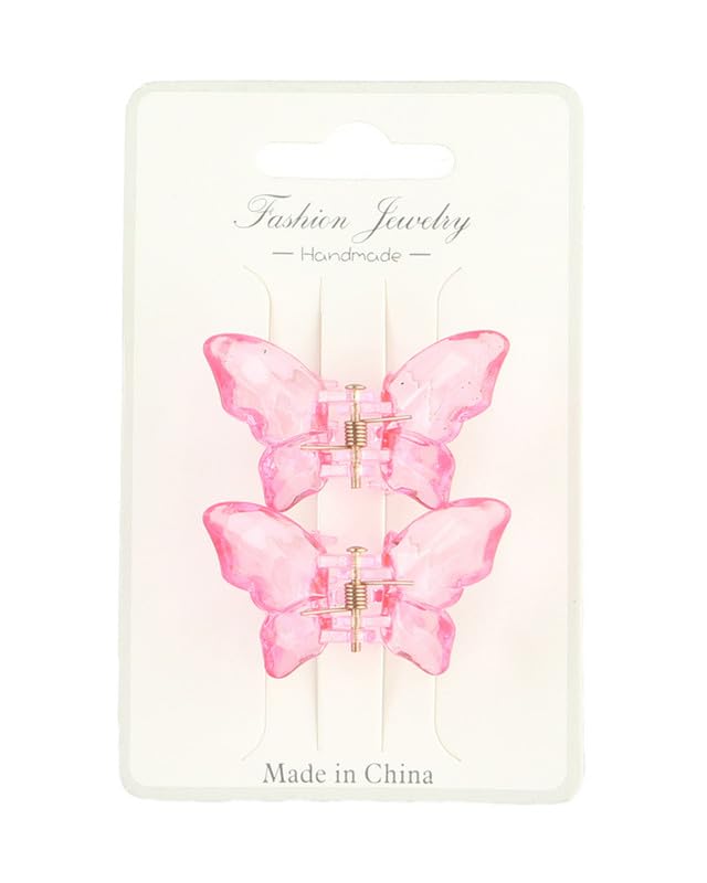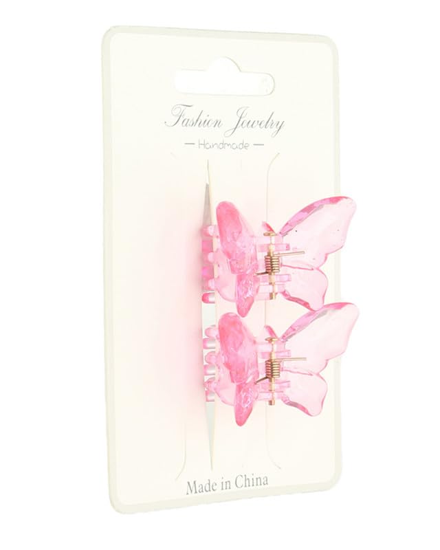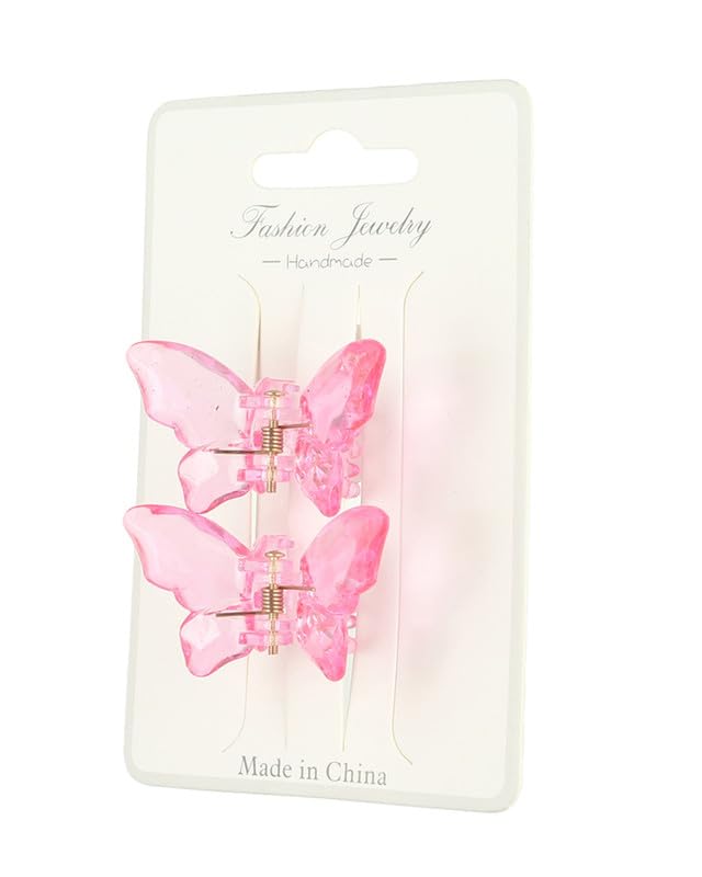 Generic - مشابك شعر بلاستيك على شكل فراشة للنساء، قطعتان - فوشيا