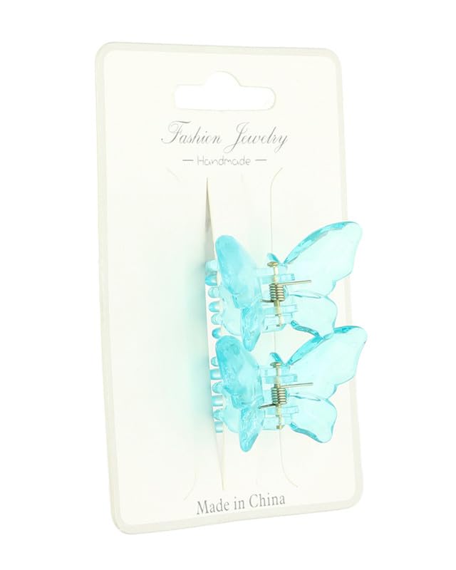 Generic - كلبسات شعر بلاستيكية على شكل فراشة للنساء - قطعتان - تركواز
