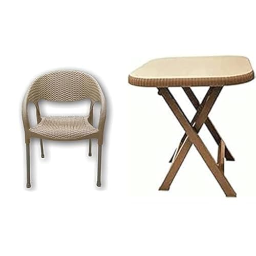 Generic - كرسي بلاستيك بارجل معدنية + حامل طاولة بلاستيكي مربع قابل للطي وقابل للتعديل 70 × سم - بيج