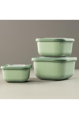 - مجموعة من 3 حاويات طعام بلاستيكية متينة بأحجام مختلفة للتخزين المرن في المنزل أو أثناء التنقل، مما يضمن الراحة والانتعاش في كل مرة.