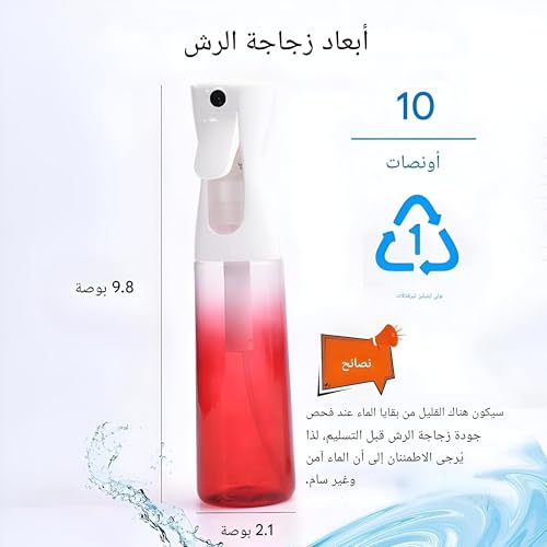 - ملاحظات ومواصفات عملية: لا تملأها بالماء الساخن لتجنب التشويه. توصف المواد بأنها ذات جودة عالية. السعة 300 مل / 10 اونصة؛ الوزن حوالي 100 غرام لكل زجاجة؛ الحجم حوالي 9.8 × 2 انش (25 × 2.2 انش). تدعم هذه التفاصيل سهولة التخزين والتوافق والاستخدام اليومي الموثوق.