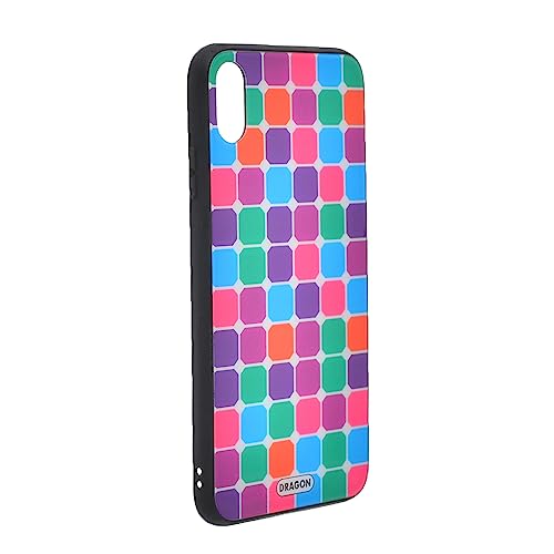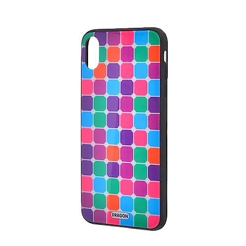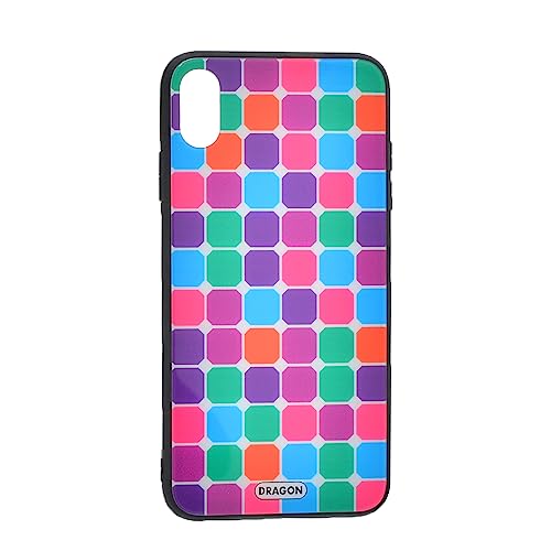Generic - جراب حماية خلفي بلاستيك مبتكر بتصميم مربعات وحواف امان من السيليكون وظهر زجاجي لموبايل ايفون X - متعدد الالوان