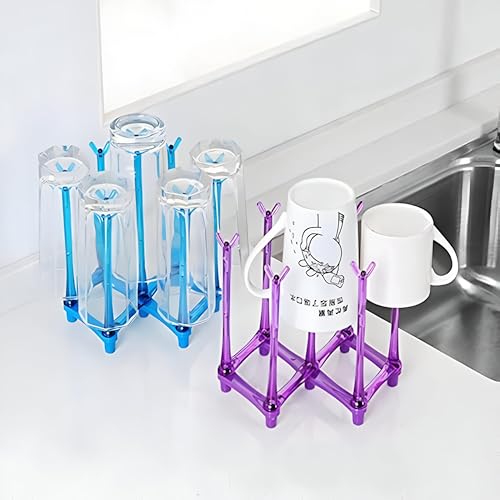 Generic - حامل اكواب بلاستيكي قابل للسحب على شكل شجرة، مثالي لتجفيف جميع انواع الاكواب وتوفير المساحة أثناء التخزين (4 قطع)
