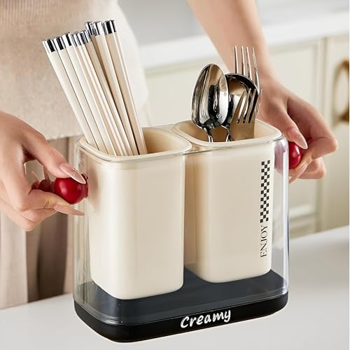 Generic - حامل أدوات مائدة بلاستيكي - مصفاة معالق مبتكرة مزدوجة الحجرة مع صينية قابلة للإزالة لتنظيم حوض المطبخ، بسعة تخزين كبيرة، أكواب قابلة للفصل للتنظيف السريع، مثالية للحفاظ على أدوات المائدة