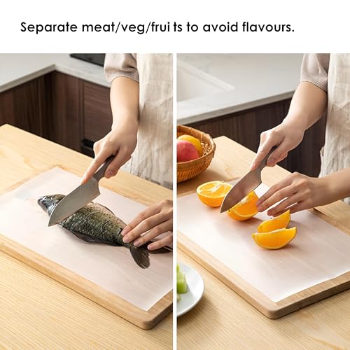 - تحتوي كل عبوة على حصيرتين للتقطيع، يبلغ قياس كل منهما طول 300 سم وعرض 24 سم، وهما مصممتان خصيصًا لتقطيع مجموعة متنوعة من المكونات مثل اللحوم والخضروات. يساعد الحجم في منع اختلاط النكهات، مما يوفر حلاً عمليًا للحفاظ على سلامة الطعام أثناء مساعيك في الطهي.