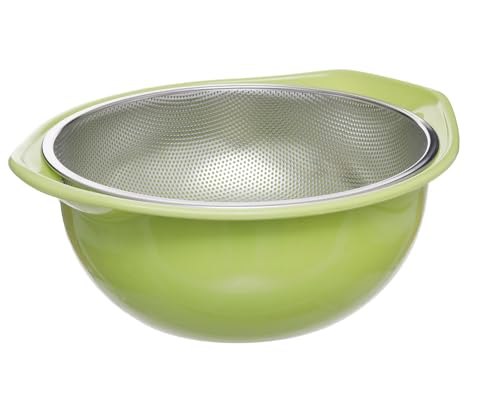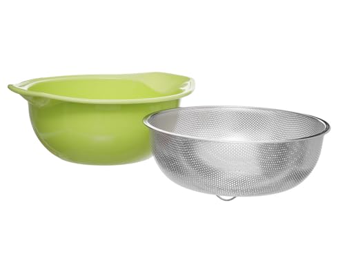 Generic - طقم طبق بلاستيك عميق ومصفاة أستانلس ستيل كبيرة متعدد الاستخدام لغسل وتصفية الطعام أخضر وفضي