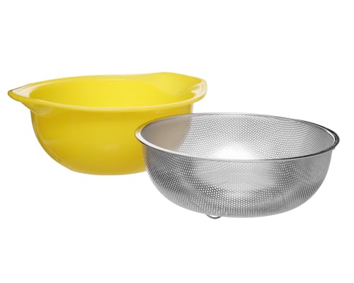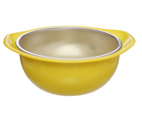 Generic - طقم طبق بلاستيك عميق ومصفاة أستانلس ستيل كبيرة متعدد الاستخدام لغسل وتصفية الطعام أصفر وفضي