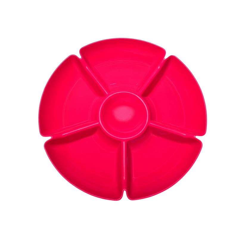 Generic - طبق بلاستيك مقسم للحلويات مع 6 أقسام - لون وردي ورمادي