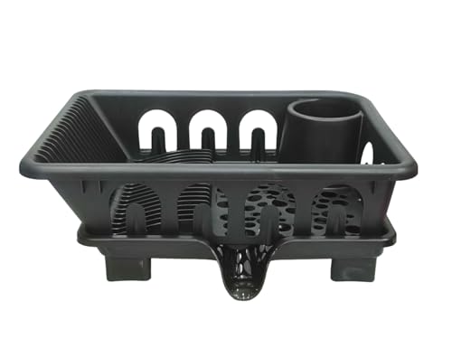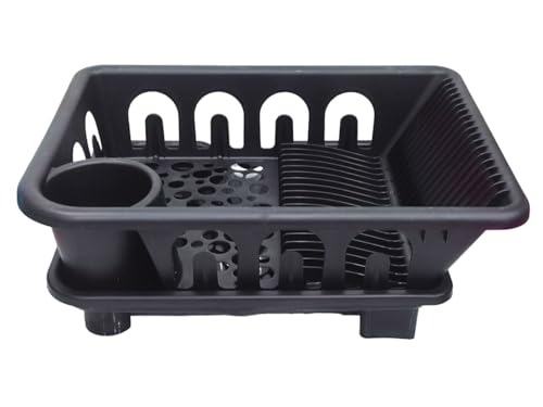 - طبق بلاستيكي مع قاعدة وفتحة مخرج مياه، هناك مساحة للأطباق والأكواب والملاعق - أسود.
