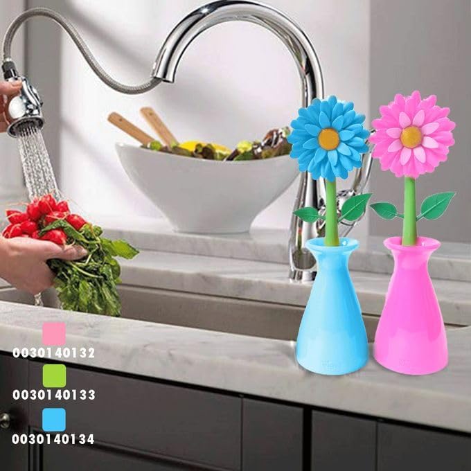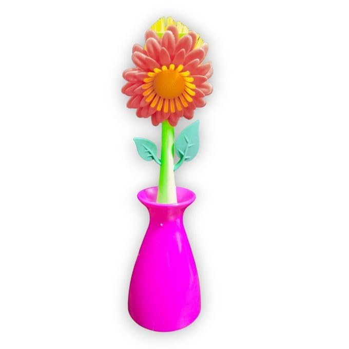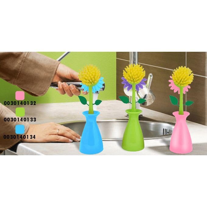 Home House House - فرشاة تنظيف الاطباق و الاحواض والبوتجاز. مصنوعة من البلاستيك علي شكل زهرة مع يد. لون موف