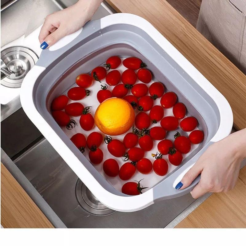 Generic - لوح تقطيع بلاستيك قابل للطي بمقبض سيليكون, مع قابس تصريف ومصفاة طعام قابلة للطي