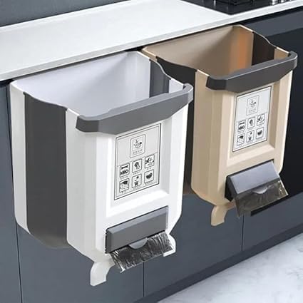 Generic - سلة قمامة معلقة قابلة للطي، مصنوعة من البلاستيك , للمنزل والمطبخ _ ديسبنسر اكياس قمامة