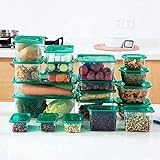 Generic - طقم حاويات تخزين طعام، مصنوع من البلاستيك، مجموعة من 17 قطعة، بغطاء شفاف وأخضر