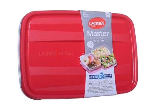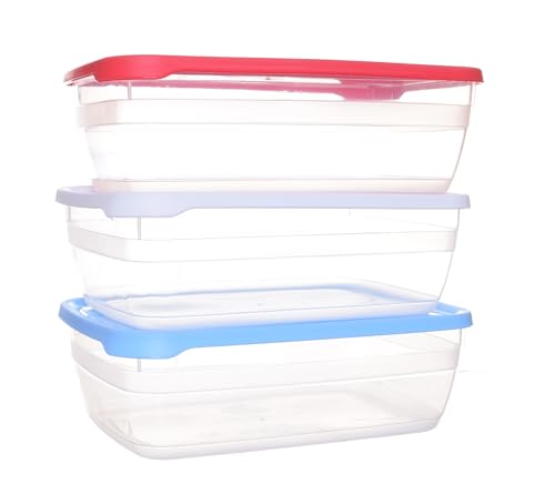 Generic - طقم علب تخزين طعام بلاستيك 3 قطع 1.8 لتر - أحمر شفاف