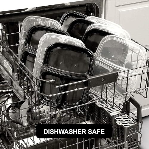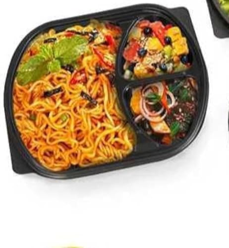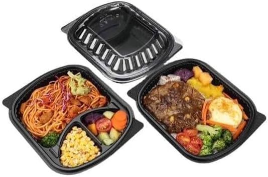 Generic - حاويات تخزين طعام بلاستيكية مع اغطية، 3 اقسام، اسود، صناديق تحضير الوجبات للاستعمال مرة واحدة (3 اقسام) (25)